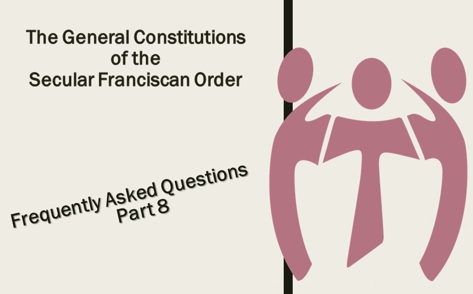 Frequently Asked Questions answered by our General Constitutions (GC): For the next several weeks we will take a look at some questions given in the 2010 edition of the Handbook for Servant Leadership. The same questions often arise on our councils and in our fraternities. Becoming familiar with the Constitutions is very helpful in addressing issues that arise in fraternities at all levels. For the complete, latest translation of the entire document, visit: https://ciofs.info/library/official-documents/ or https://www.secularfranciscansusa.org/the-general-constitutions-of-the-secular-franciscan-order-2000/