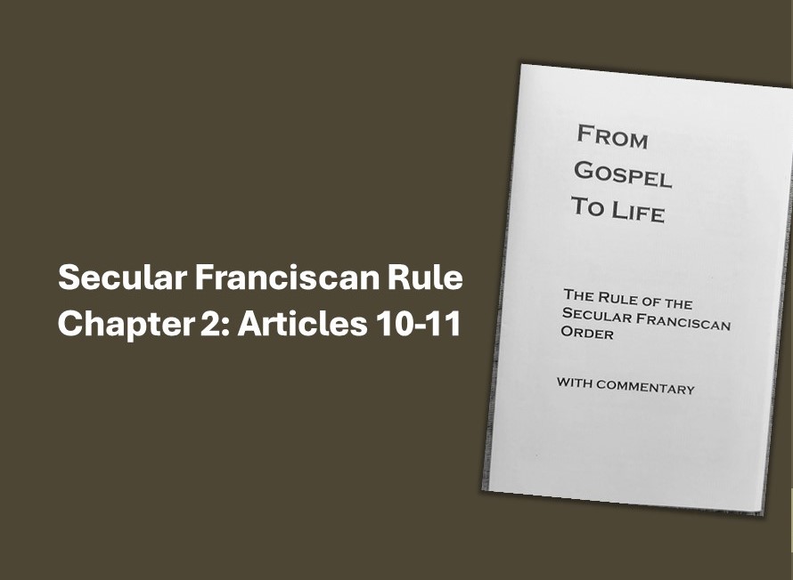 The OFS-USA National Fraternity has recently published “From Gospel to Life,” the OFS Rule with Commentary. This occasional series highlights the Prologue (See November 17th and 24th) and the articles of the Rule, the commentary, and questions based on this publication for fraternity discussion. You may order “Gospel to Life” at this link: https://www.secularfranciscansusa.org/wp-content/uploads/Order-Form_October_2023rev.pdf