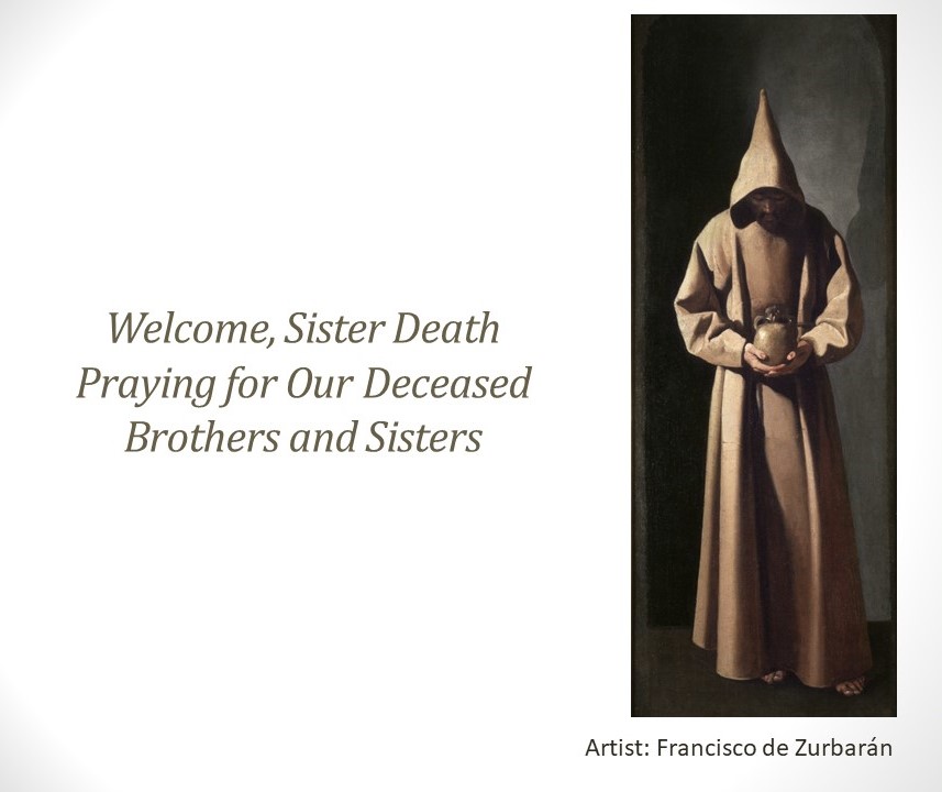 Please share with your local fraternityDuring the month of November, the entire Church prays for the dead. St. Francis meditated on Sister Death throughout his life. Toward the end of his earthly life, he spoke of Sister Bodily Death in the Canticle of the Creatures.