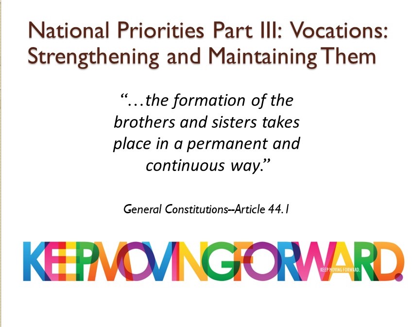 En nuestro Capítulo Nacional en octubre de 2022, el Consejo Nacional decidió que las prioridades para 2022-2025 serán Vocaciones, Comunicaciones y Relaciones interpersonales. Durante las próximas semanas, Formation Friday analizará cada una de las prioridades.