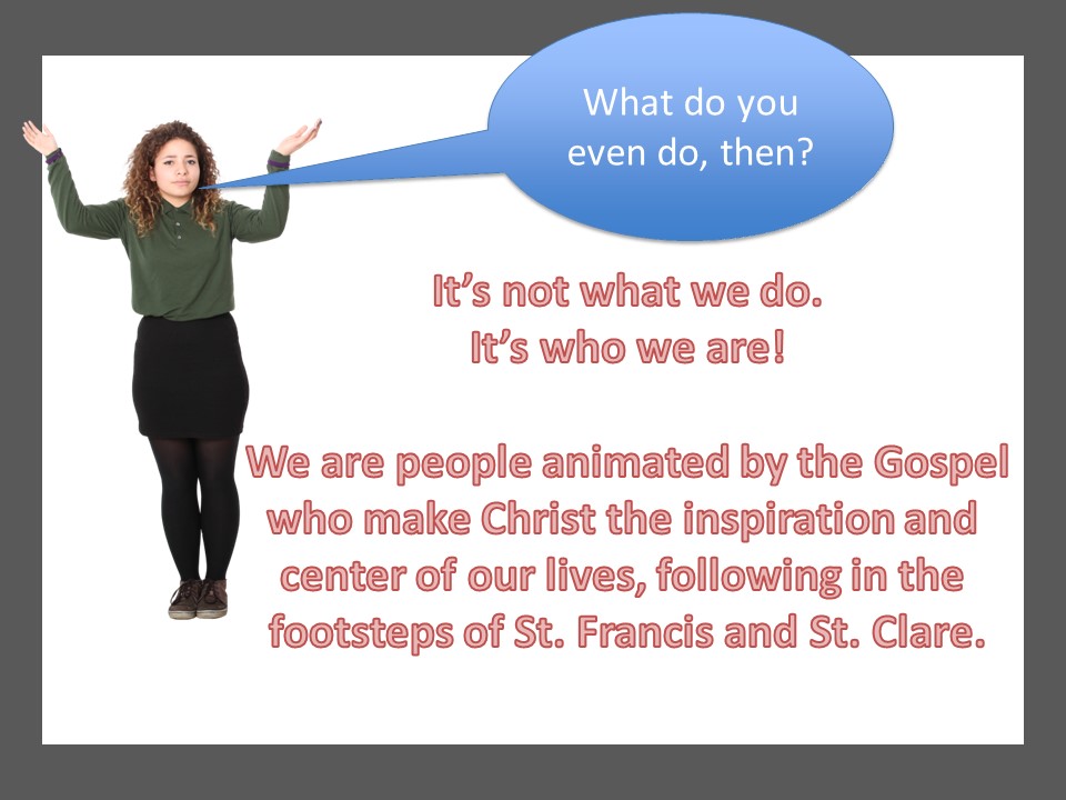 — in discerning and deepening the Franciscan vocation by studying the writings of Saint Francis, Saint Clare and Franciscan authors.