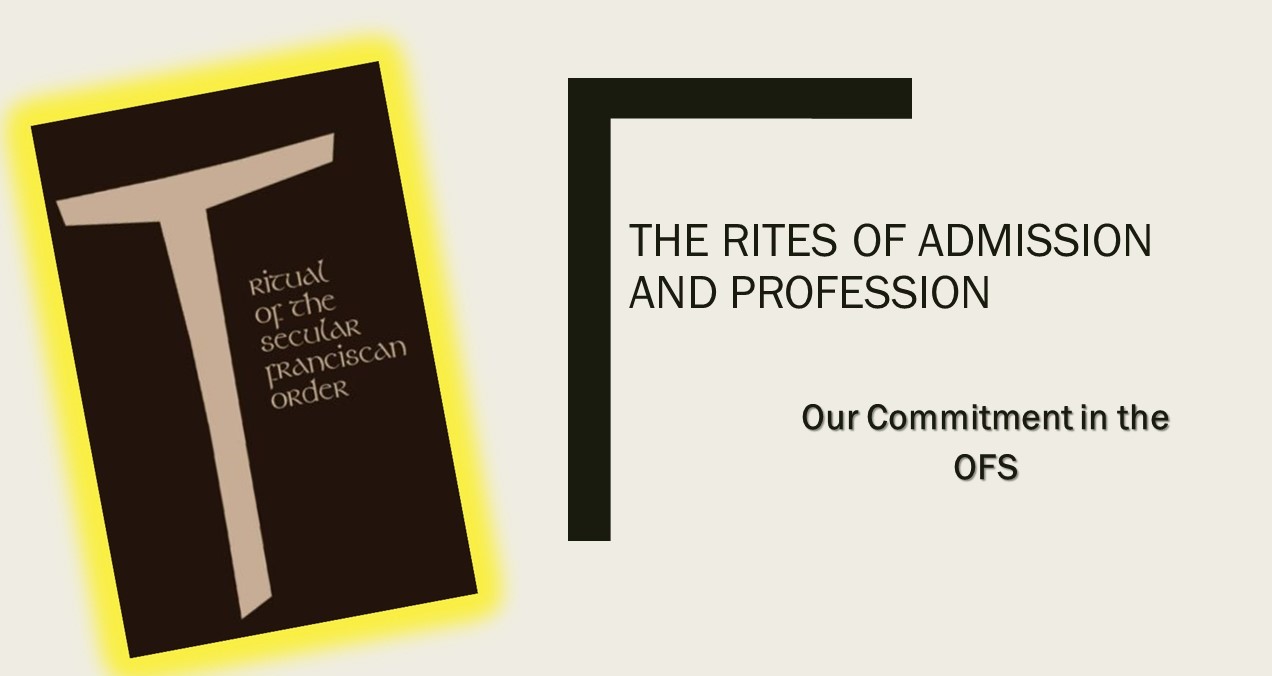 Please share with your local fraternity (En español abajo)Although formation is a life-long process, those who are inquirers and candidates are in a period of discernment called initial formation. During this time their formators guide them in their initial journey of discernment toward a permanent commitment in the Secular Franciscan Order.This period is marked by certain milestones:1- The Ceremony of Introduction and Welcoming (before Inquiry)2- The Rite of Admission (before Candidacy)3- The Rite of Profession—permanent commitment to the Secular Franciscan OrderThis week we focus on the Rites of Admission and ProfessionThe rites celebrated in the formation of a Secular Franciscan signify the desire to become a member of the order and to make a permanent commitment to the Gospel life.• The Rite of Admission is the moment when we become members of the Order—We are attached to the Order although we have not yet made a permanent commitment. We wear the TAU and may write OFS after our name.After about nine months of orientation and the period of Inquiry, the Inquirer writes to the Council of the local fraternity requesting admission to Candidacy. The members of the Council should have come to know this person quite well. After reading the letter and interviewing the Inquirer, the Council votes on acceptance to Candidacy.During the Rite of Admission the Inquirers ask to enter the Secular Franciscan Order so that they may live more intensely and faithfully the grace of their Baptism. The Minister receives the new Candidate into the OFS so that they may begin their period of initial formation and continue to prepare for their permanent commitment.After about eighteen months of Candidacy, the candidates again approach the Council in writing to request profession of the rule of the Secular Franciscan Order and to make a permanent commitment to the gospel life.• With the Rite of Profession, we make our perpetual (life-long) commitment to live the Gospel life according to our Rule. Profession does not make us Secular Franciscans—it celebrates the commitment we make to live the Gospel life.The celebration of Profession is God’s action and a saving event: it is a moment when salvation reaches the faithful. It enables them to make a promise to live the Franciscan gospel life and produces in them particular effects of grace, by which they are called to specific tasks within the People of God. The liturgical act of Profession makes the connection with Baptism clear—it connects us with the Church. The Rite of Profession is a “confession of faith.” Our words and actions show that we are true followers of Christ and His Gospel.The Rites do not transform us into Franciscans. They celebrate the change that has already taken place in us throughout our discernment. We celebrate the fact that God has called us from the time of our Baptism to live out our lives as Catholics and as Franciscans. God delights in our acts of love for him. He calls us first. The Holy Spirit has planted the seed of our vocation in us from the very beginning.Please read the Rites of Admission and Profession in the Ritual. The following questions can be answered in fraternity groups, with a prayer partner, or in your journal.+ For you, what are the four most outstanding parts of the Rites of Admission and Profession?+ In the promises we make at Admission and Profession, what might present a challenge to you?+The Holy Spirit speaks to each of us in a very personal way. As you read the Rites of Admission and Profession, how did they touch and change you and bring you closer to God? Give examples.++++++++++++++++++++Los ritos de admisión y profesión 10 de julio de 2022Comparta con su fraternidad localAunque la formación es un proceso de toda la vida, quienes son indagadores y candidatos se encuentran en un período de discernimiento llamado la formación inicial. Durante este tiempo sus formadores los guían en su camino inicial de discernimiento hacia un compromiso permanente en la Orden Franciscana Seglar. Este período está marcado por ciertos hitos:1- La ceremonia de presentación y bienvenida (antes de “Inquiry”)2- El Rito de Admisión (antes de la Candidatura)3- El Rito de la Profesión—compromiso permanente en la Orden Franciscana SeglarEsta semana nos enfocamos en los Ritos de Admisión y ProfesiónLos ritos que se celebran en la formación de un franciscano seglar significan el deseo de hacerse miembro de la orden y de comprometerse permanentemente con la vida evangélica.• El Rito de Admisión, es el momento en que nos convertimos en miembros de la Orden. Estamos adscritos a la Orden aunque todavía no hemos hecho un compromiso permanente. Usamos la TAU y podemos escribir OFS después de nuestro nombre.Después de unos nueve meses de orientación y el período de Pre-candidatura, el pre-candidato escribe al Consejo de la fraternidad local solicitando la admisión a la Candidatura. Los miembros del Consejo deberían haber llegado a conocer bastante bien a esta persona. Después de leer la carta y entrevistar al Pre-candidato, el Consejo vota sobre la aceptación a la Candidatura.Durante el Rito de Admisión los Pre-candidatos piden ingresar en la Orden Franciscana Seglar para vivir más intensa y fielmente la gracia de su Bautismo. El Ministro recibe al nuevo Candidato en la OFS para que inicie su período de formación inicial y continúe preparándose para su compromiso permanente.Después de unos dieciocho meses de Candidatura, los Candidatos se dirigen de nuevo al Consejo por escrito para solicitar la profesión de la regla de la Orden Franciscana Seglar y hacer un compromiso permanente con la vida evangélica.• Con el Rito de Profesión, hacemos nuestro compromiso perpetuo (de por vida) de vivir la vida del Evangelio según nuestra Regla. La profesión no nos convierte en franciscanos seglares, sino que celebra el compromiso que hacemos de vivir la vida del Evangelio.La celebración de la Pro