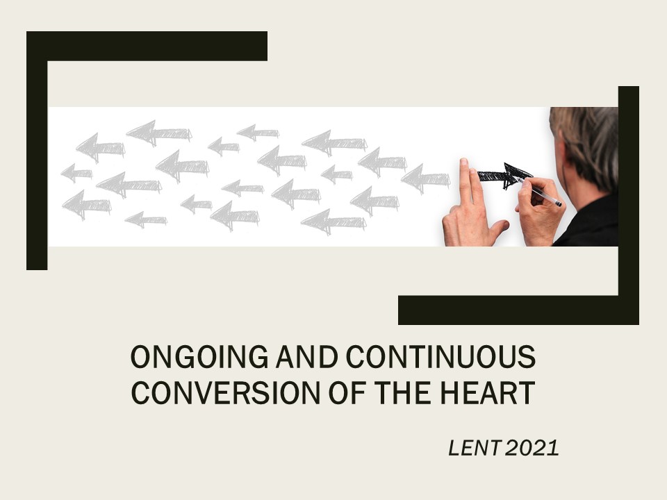 Dear Brothers and Sisters, This week our formation lesson will help us focus this Lent upon ongoing conversion. I like the simplicity of the plan below. Peace, Dona