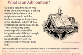 Please share with your fraternities (En español abajo) Korean translation attached in a separate PDF. Focus on the Admonitions (#I) https://www.franciscantradition.org/francis-of-assisi-early-documents/the-saint/writings-of-francis/the-undated-writings/the-admonitions/144-fa-ed-1-page-128 [I. The Body of Christ] 1The Lord Jesus says to his disciples: I am the way, the truth and the life; no one comes to the Father except through...